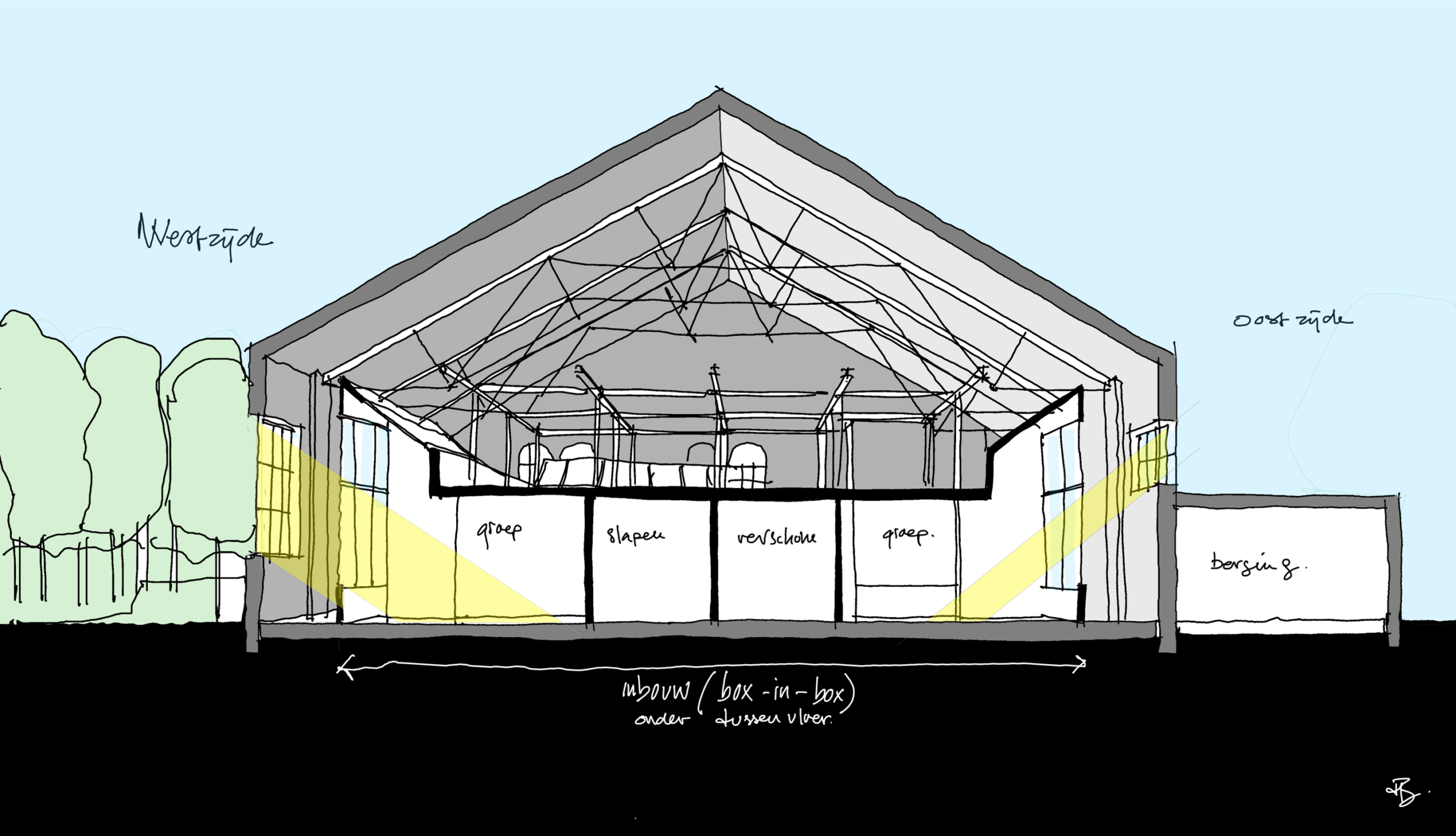 Het rijksmonument, oorspronkelijk gebouwd als militaire manege in 1900, ligt centraal in ’s-Hertogenbosch en komt in april 2026 beschikbaar voor een nieuw initiatief. Het ingediende concept, The Generator, combineert kinderopvang en buitenschoolse opvang met activiteiten voor jongeren en ouderen, inclusief behoud van de aanwezige horeca. In het gepresenteerde concept wordt het gebouw flexibel gebruikt door verschillende generaties op verschillende dagdelen, waarbij de ruimtelijke indeling aansluit op de bestaande constructie en het monumentale karakter behouden blijft. Circulair en demontabel materiaalgebruik maakt programmatische duurzaamheid en toekomstige initiatieven mogelijk. Het initiatief richt zich op generatie-overstijgende verbinding, ontmoeting en maatschappelijke betrokkenheid, en draagt bij aan een levendig en toegankelijk stadscentrum. Bureau van Berkum BV heeft de wensen van de betrokken partijen vertaald naar een ruimtelijke invulling en een financieel onderbouwd concept. The Generator is op de derde plek geëindigd!